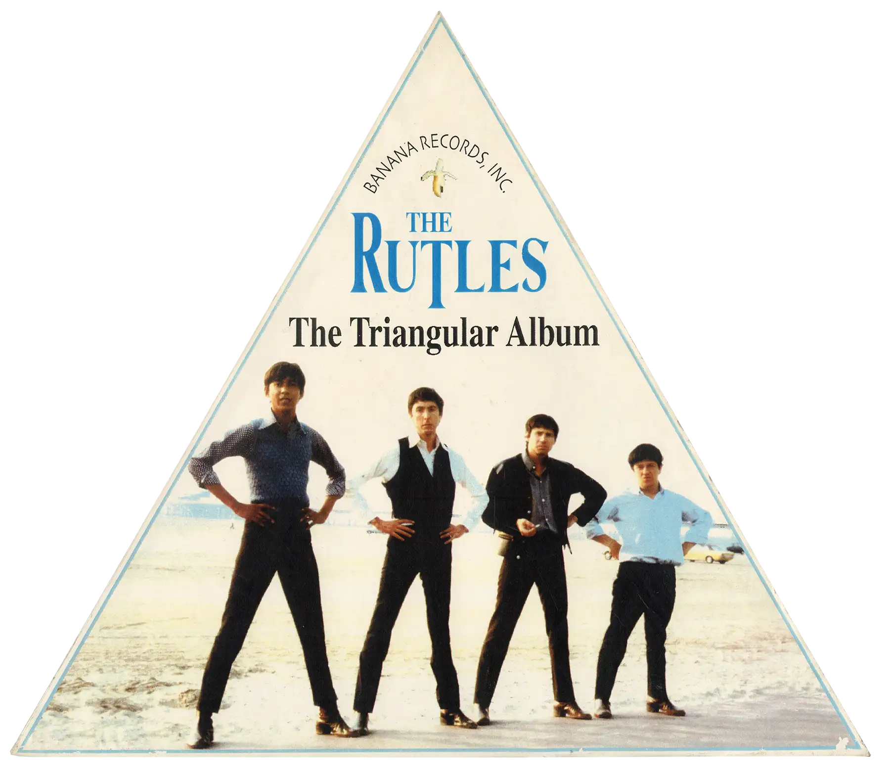 Vinyl album and CD props, used during the fiming of The Rutles 2: Can't Buy Me Lunch. The Rutles 1 vinyl album cover prop was used by David Bowie, while The Triangular Album prop was used by Tom Hanks.