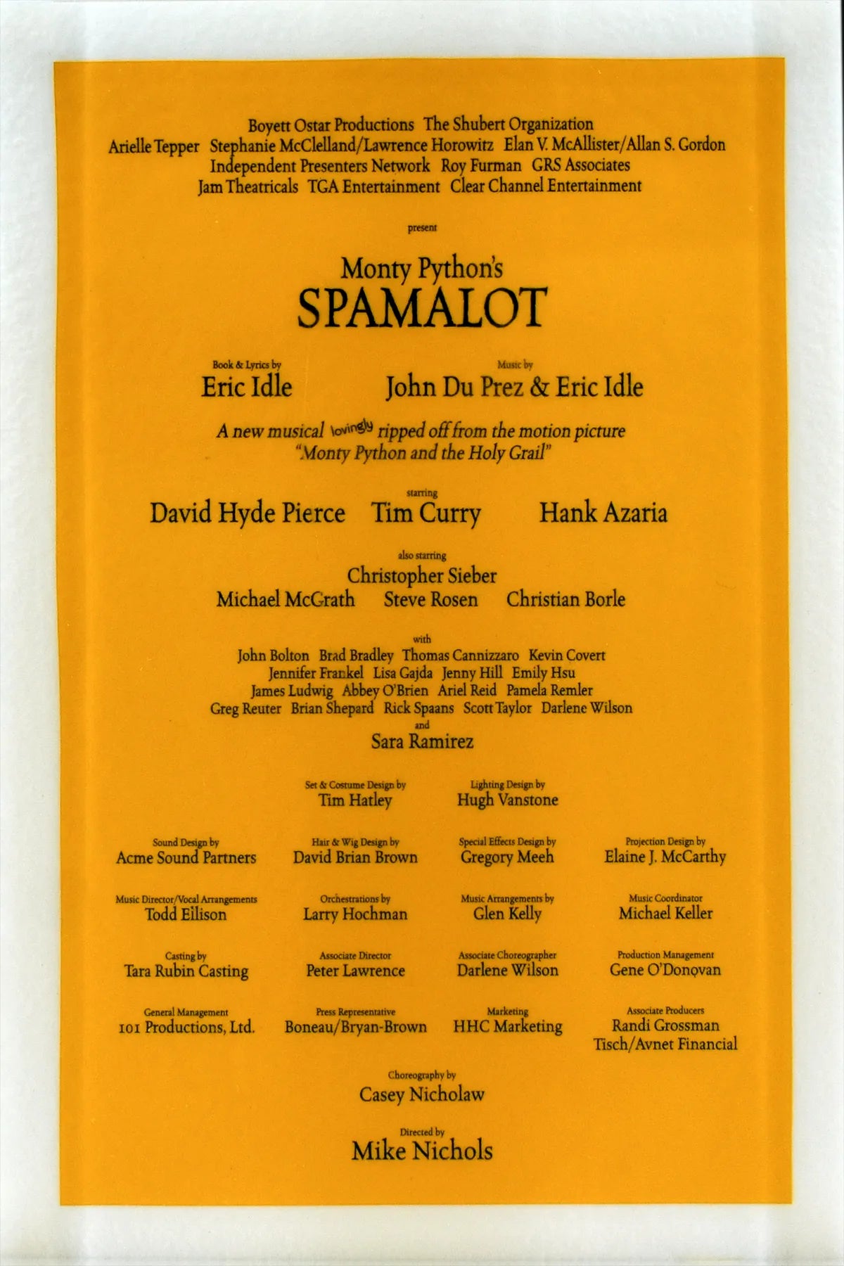 • Resin desk plaque (4"x6")commemorating the opening night of Spamalot at New York's Shubert Theatre on March 17, 2005