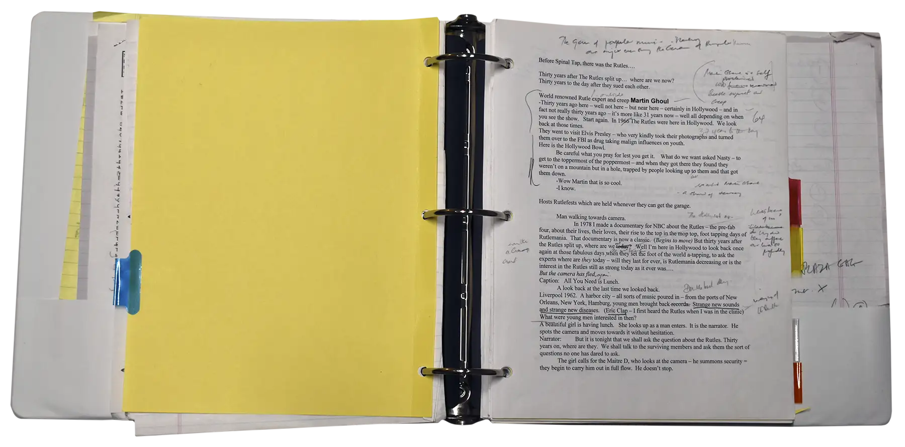 Draft of The Rutles 2: Can't Buy Me Lunch script with handwritten notes, circa 2003.