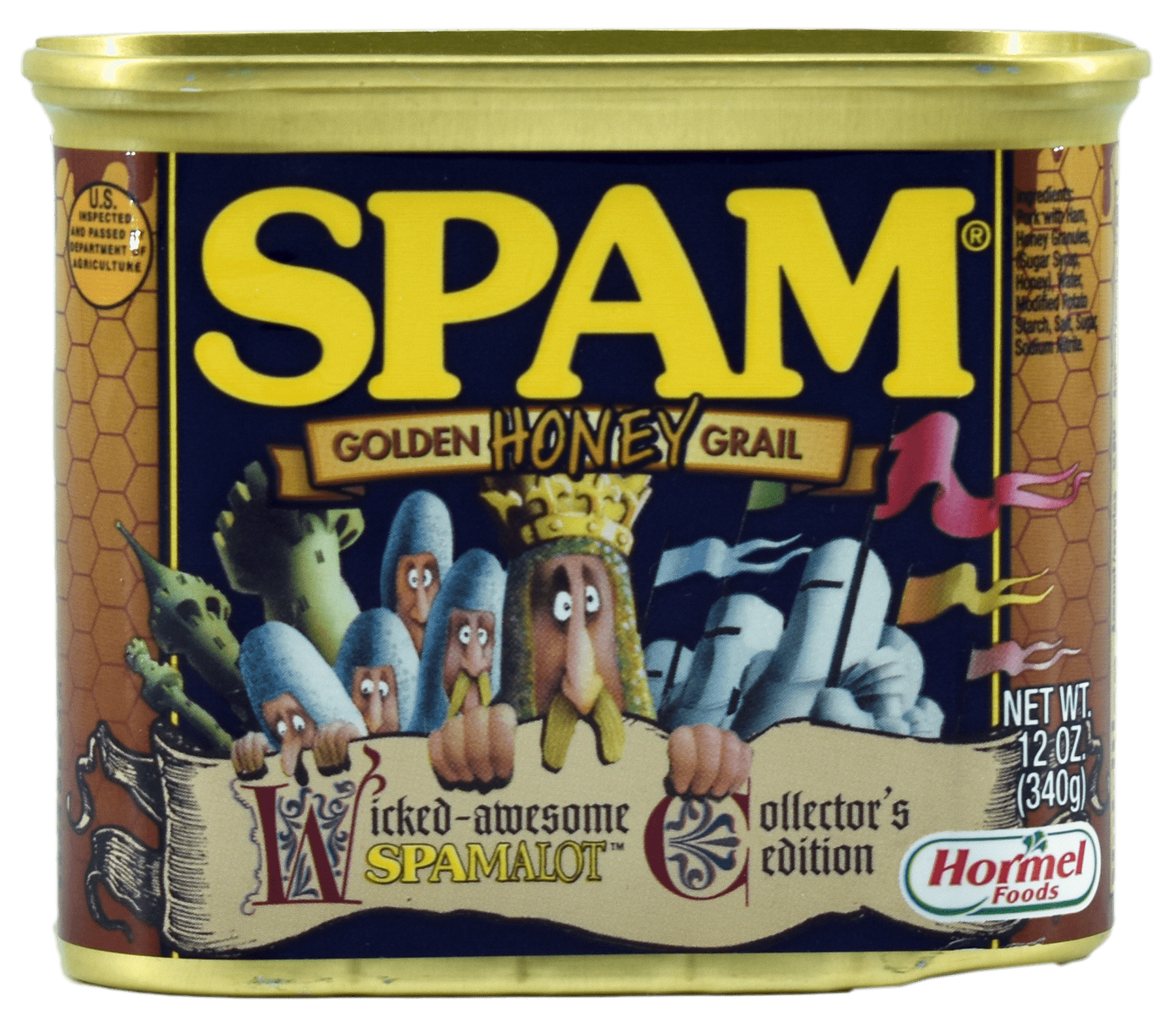 Original tins of Spamalot Collector’s Edition SPAM. This limited-edition bundle includes one Golden Honey Grail and one Stinky French Garlic. These quirky collectibles were first offered at Chicago’s Shubert Theatre box office to the first 100 fans in line on December 6, 2004, making them a rare opening-day treasure.