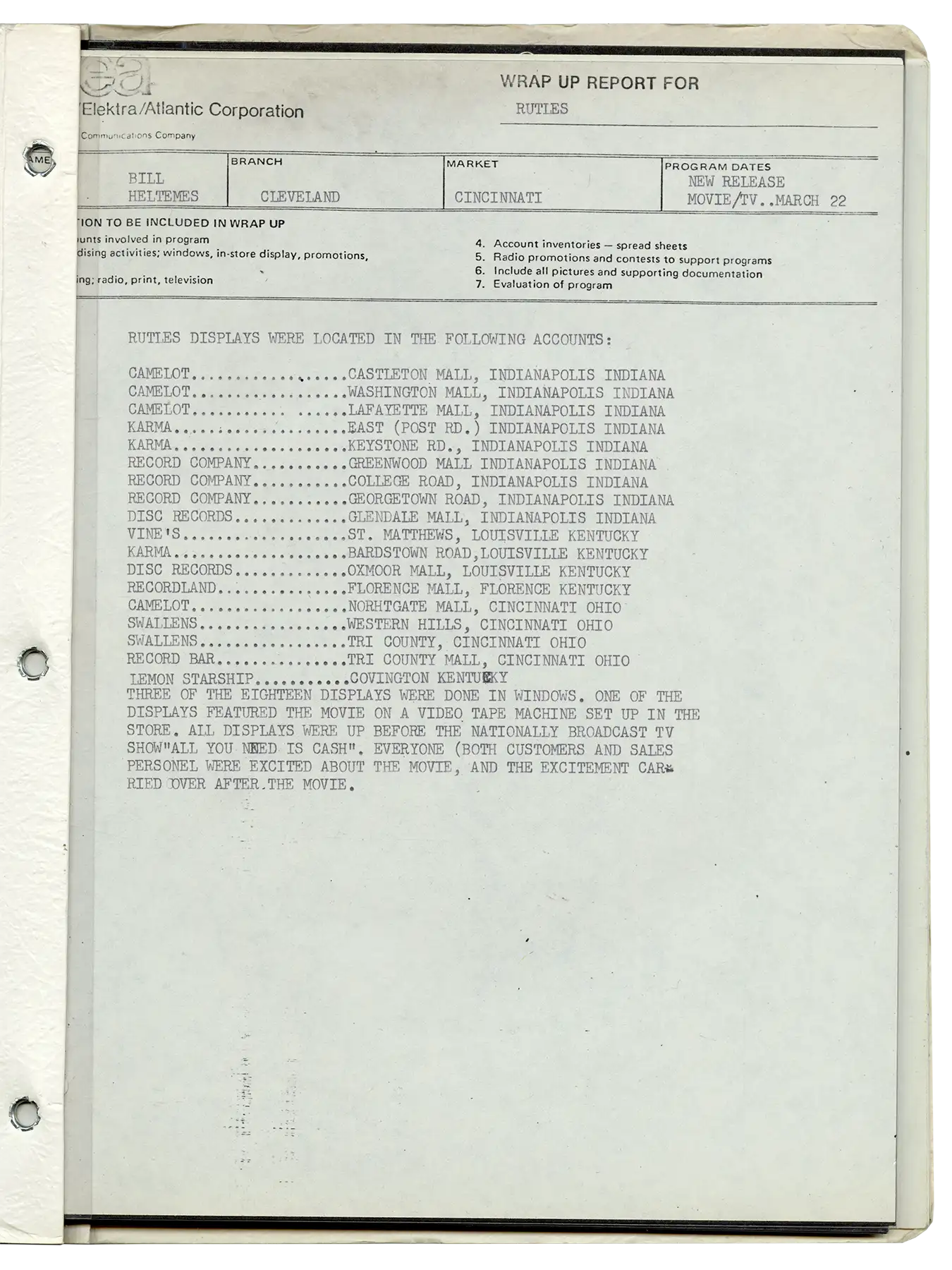 Reports on record store marketing displays across the United States in support of The Rutles LP, 1978.
