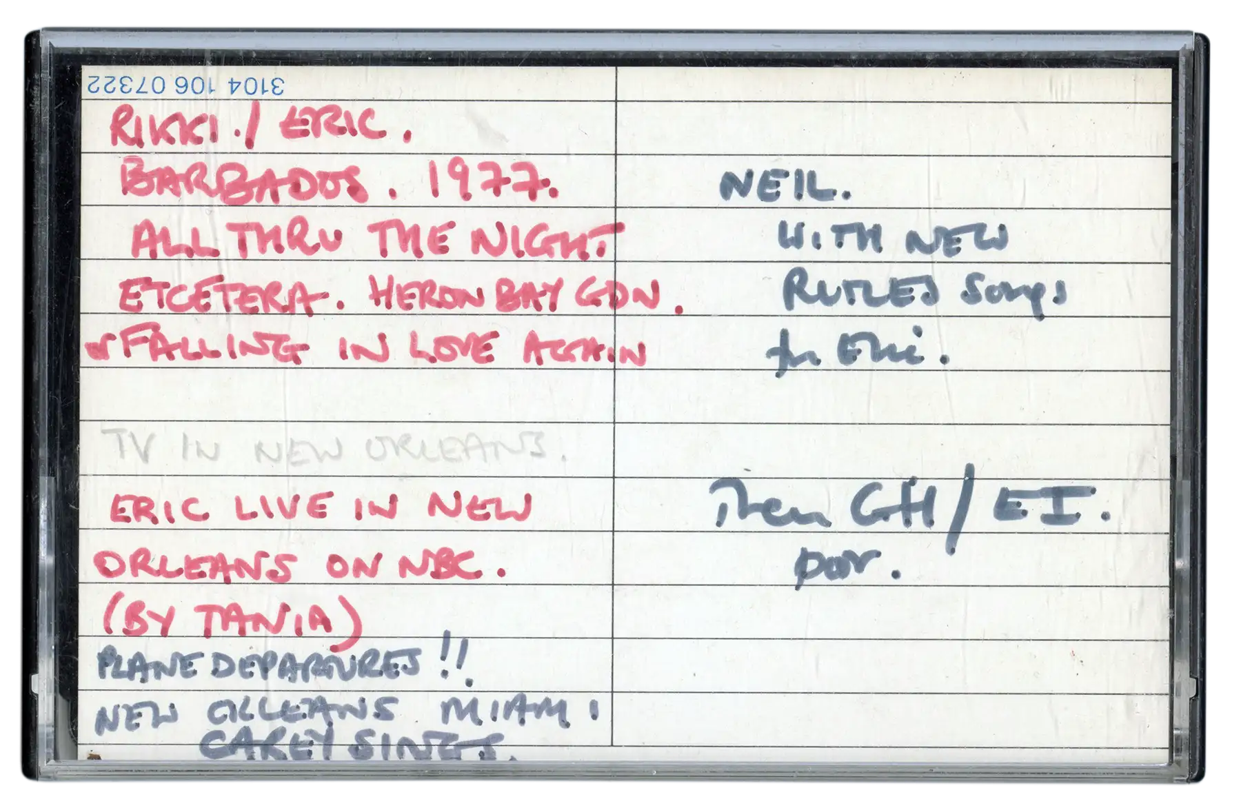 Audio cassettes containing Rutles demos and other music, including songs recorded with Ricky Fataar, circa 1977.