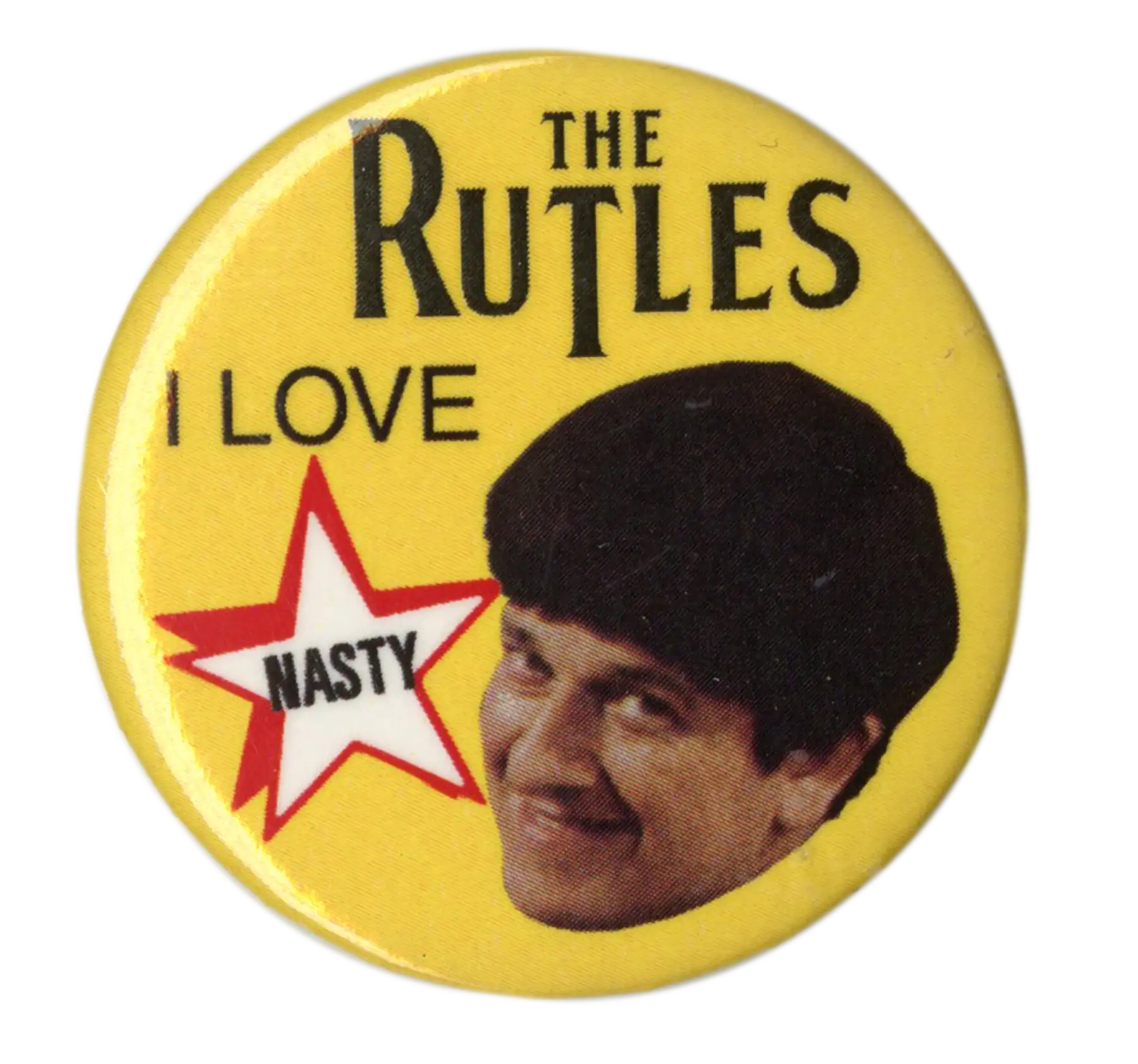 Rutles pinback buttons, matchbook covers, and a candle, perfect for your Prefab Four shrine.