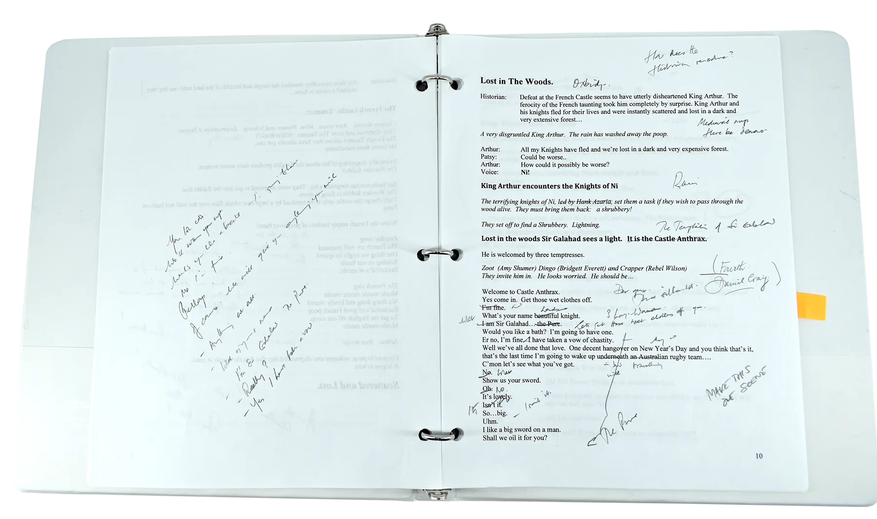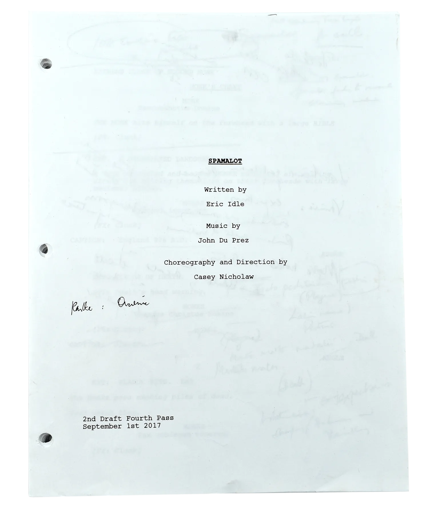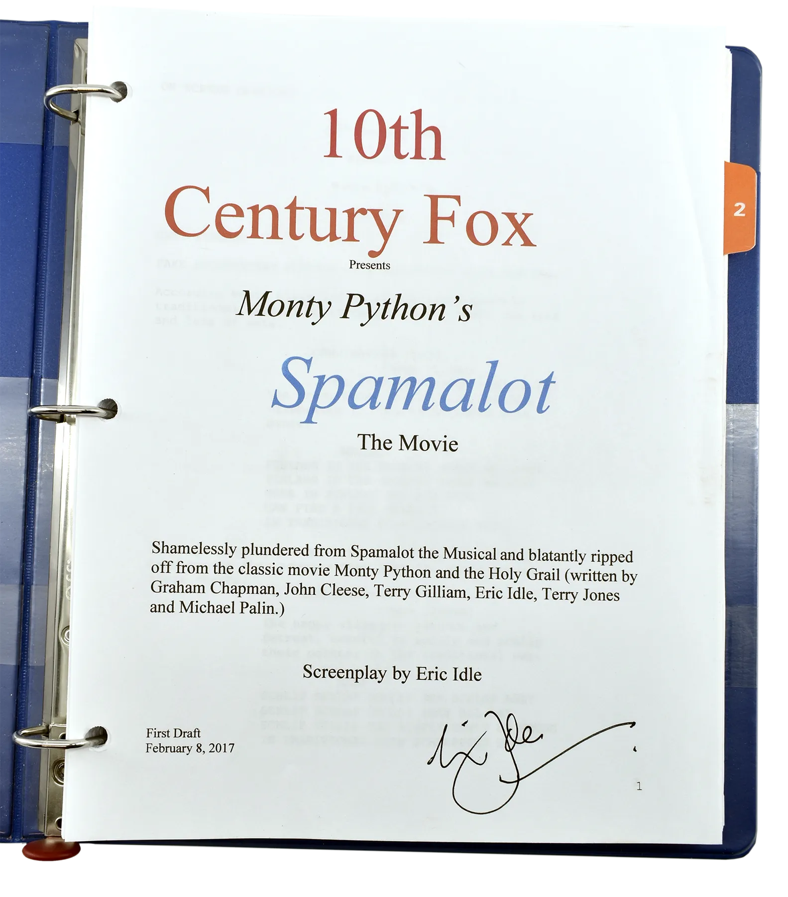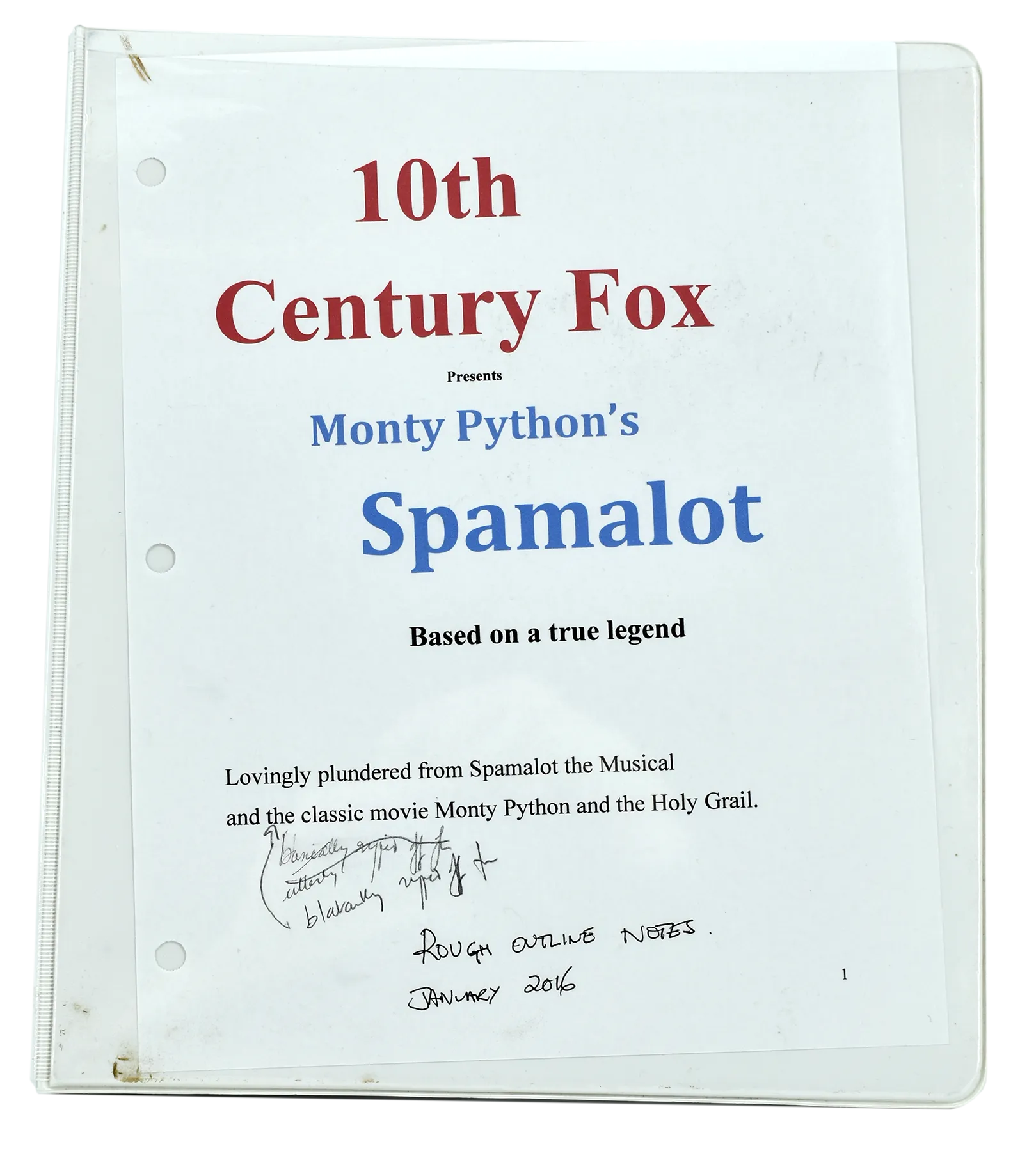 Loose-leaf binders containing various drafts of the screenplay adaptation of Spamalot, 2016 - 2018.