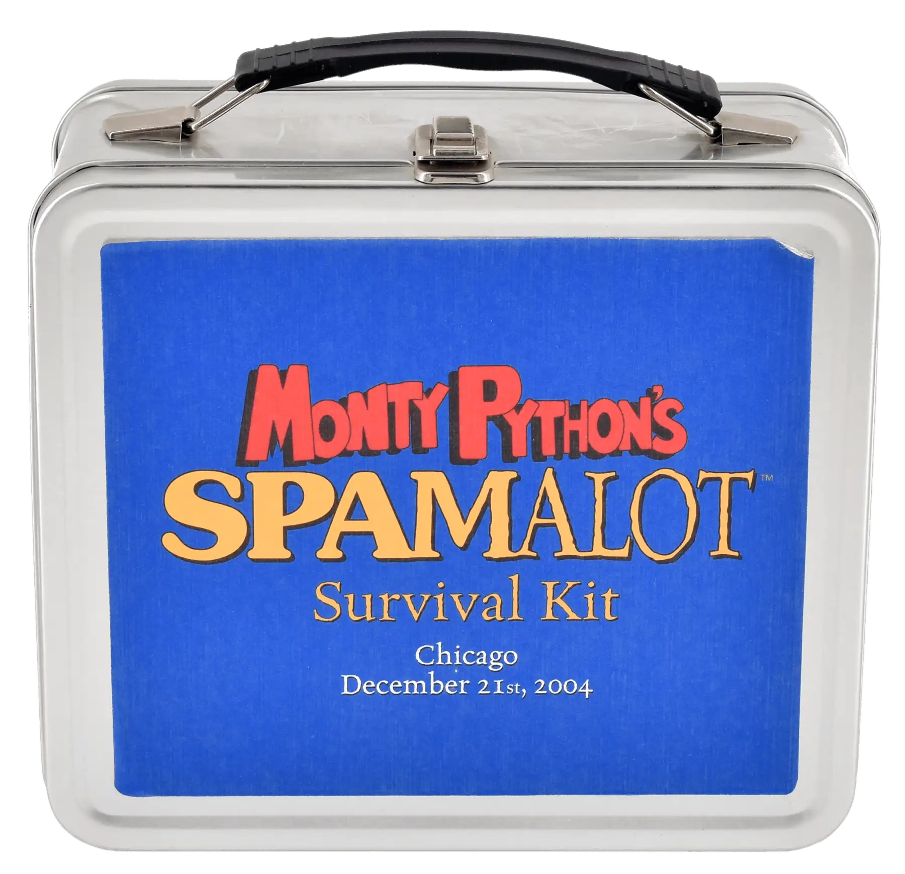 • Signed Spamalot “Survival Kit” lunch box, filled with essentials from the World Premiere at Chicago’s Shubert Theatre on December 21, 2004