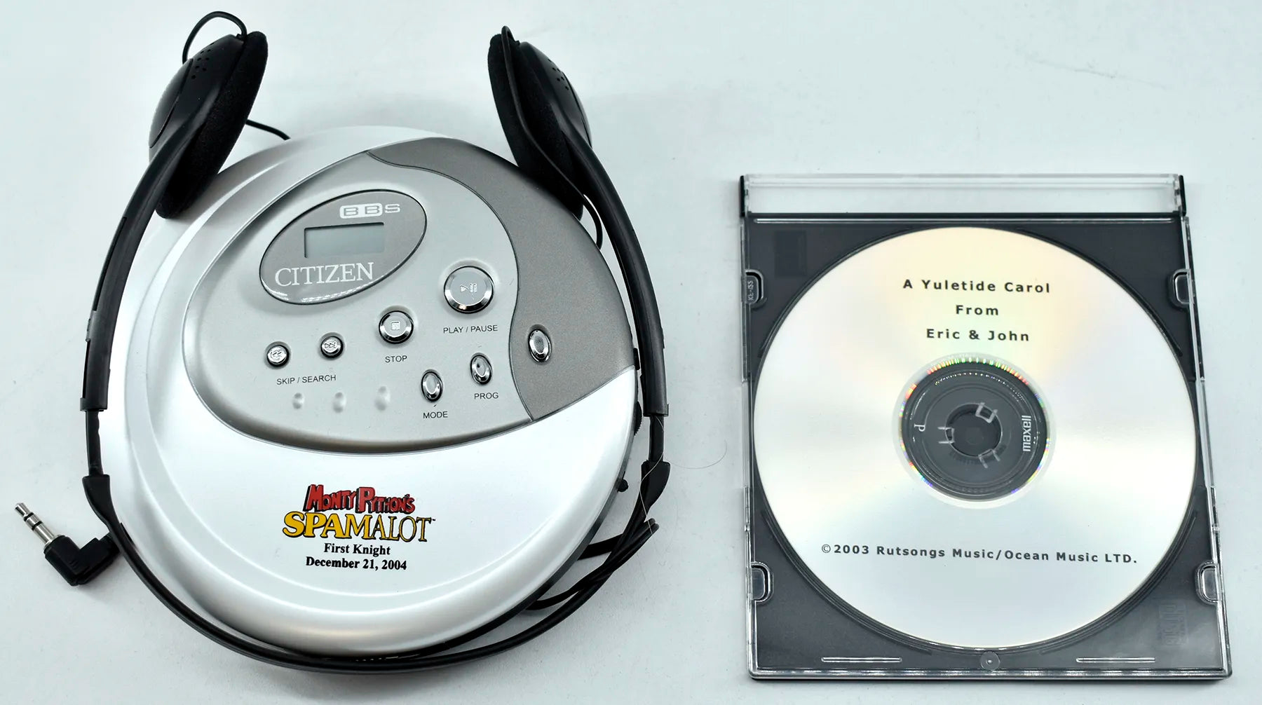 • Spamalot-branded CD player, given to cast members at the play’s world premiere at Chicago’s Shubert Theatre on December 21, 2004