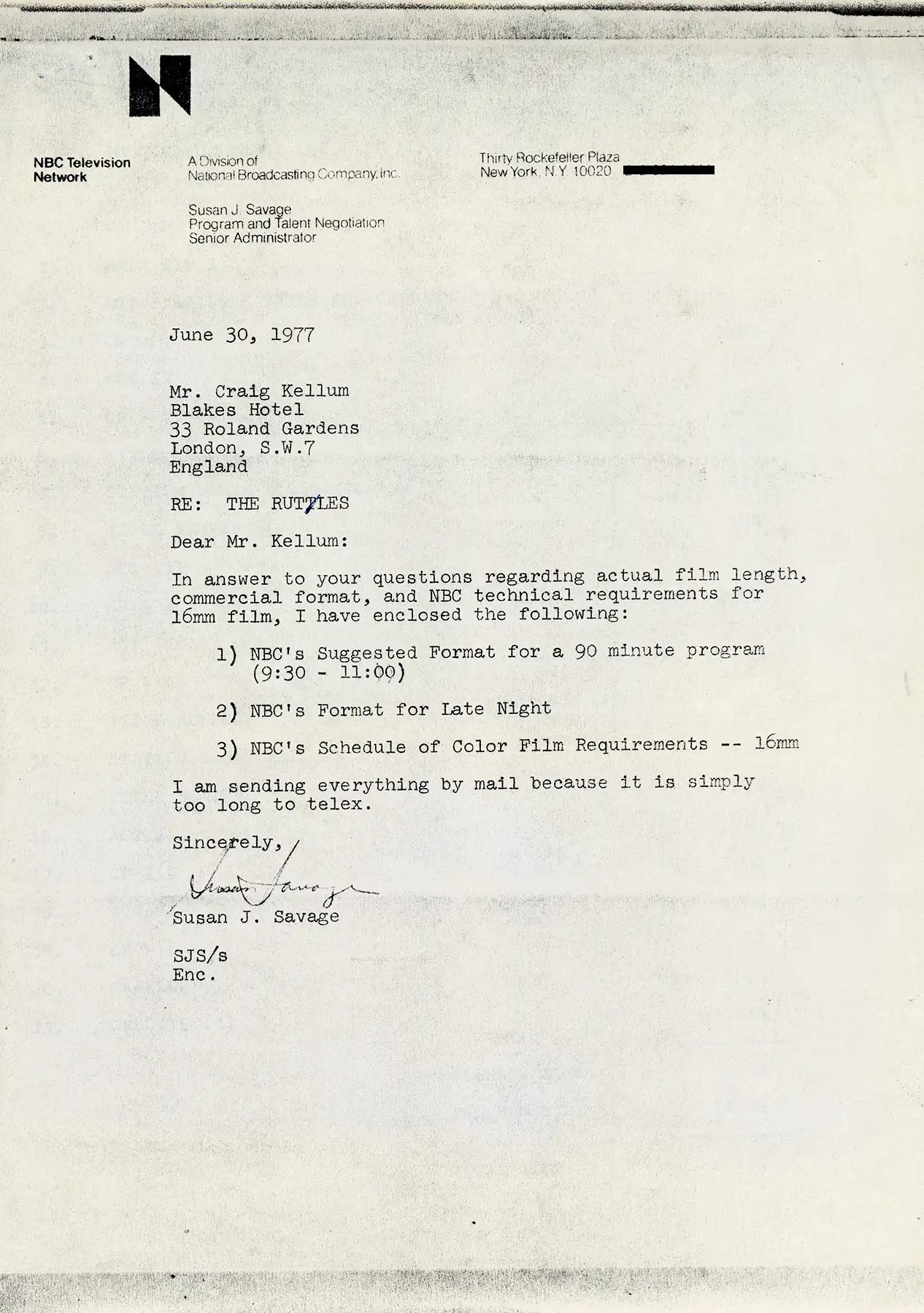 "It was a time of fun, magical madness, and great music, and all too soon the five weeks were over and Gary and I began cutting the movie. I felt it still lacked something. It needed a big performance, so we flew to New York, where I hastily wrote a scene for John Belushi as Ron Decline (Allen Klein), with Al Franken (future congressman) and Tom Davis as his henchmen. I sketched in a nice scene for the totally adorable Gilda Radner (who would go on to marry Gene Wilder), which we shot in the Village, and SNL newcomer Bill Murray improvised wonderfully as Bill Murray the K, a very silly DJ from Flushing. Finally, we shot Dan Aykroyd in the Bowery loft where I had lived with Tania and written the screenplay. He played the unfortunate record executive who had 'passed' on the Rutles.