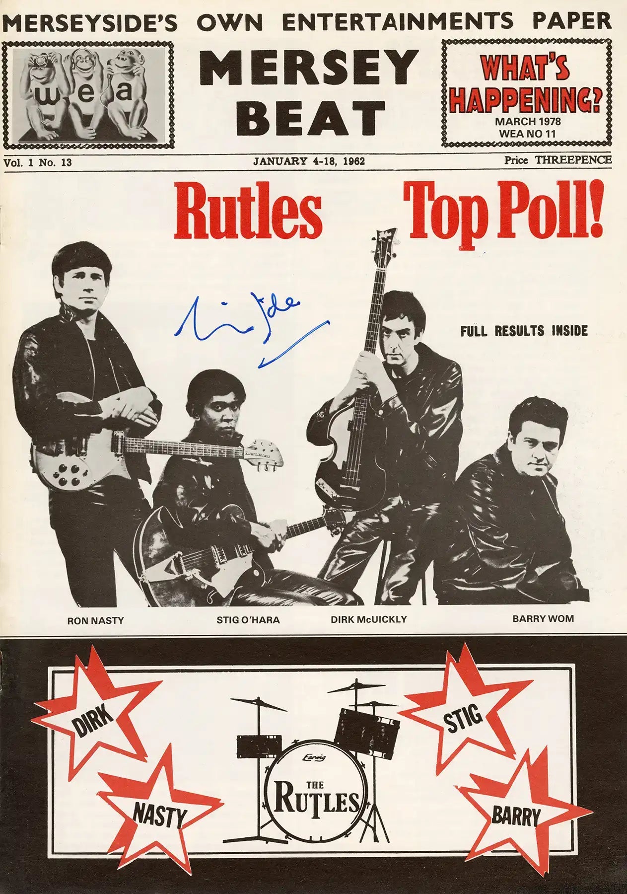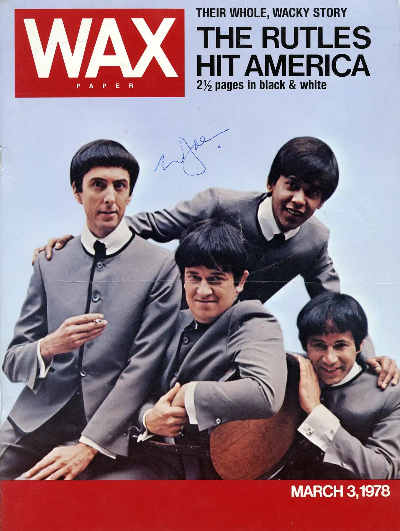 Includes signed copies of What’s Happening? (March 1978, WEA No. 11); one signed copy of Wax Paper, Vol. 3, No. 2 (March 3, 1978); and one special Rutlemania edition of Wax Paper dated March 3, 1978.